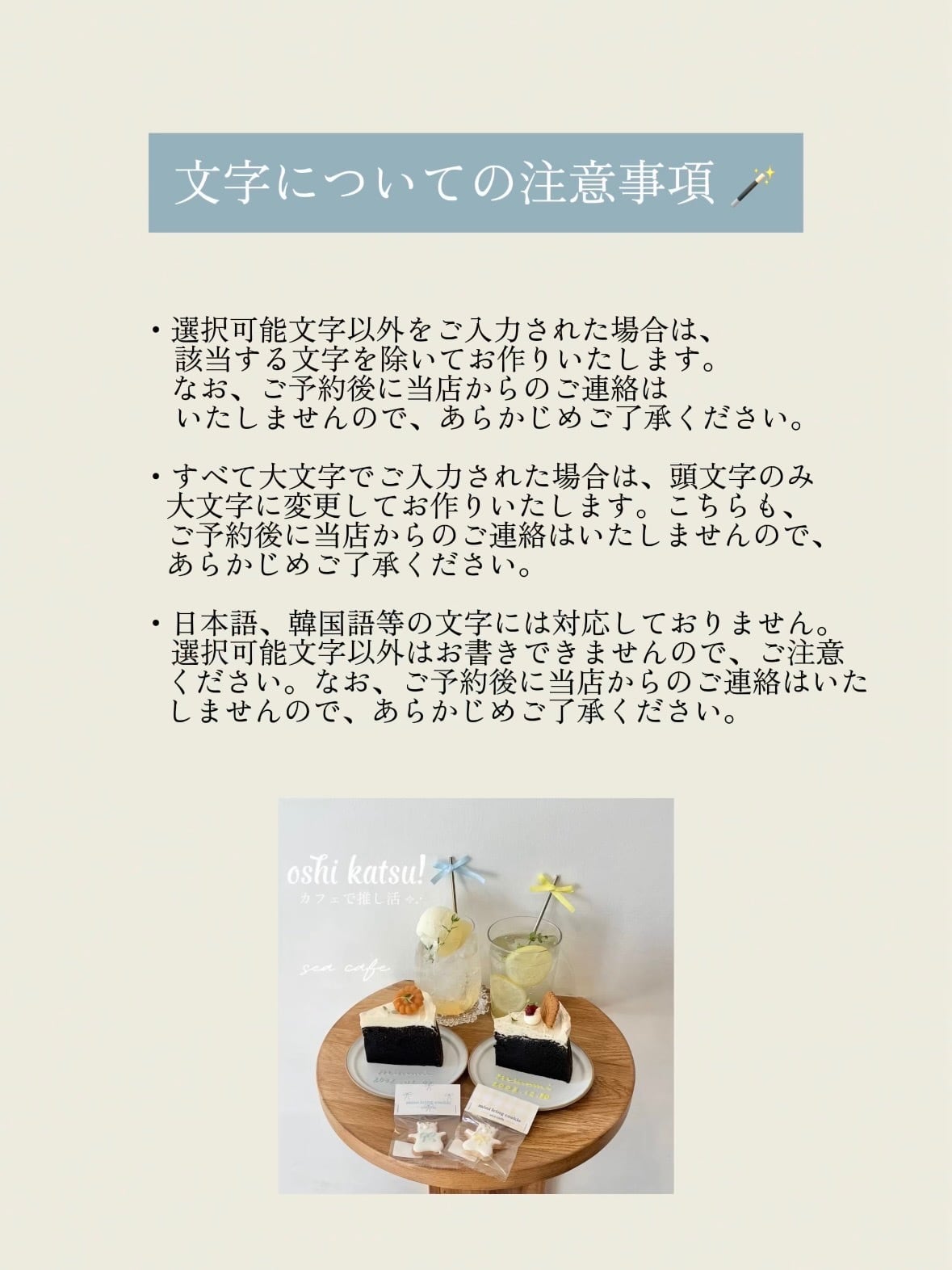 ご予約前にご確認頂きたいことが上記の商品画像に記載されております。必ずご予約前に全文をご確認お願いいたします。記載済みのことに関してのトラブルによるキャンセルは一切お受けできません。お手数をおかけしますがよろしくお願いいたします。