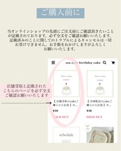 ⚠︎︎ご購入後のご注文内容の変更は一切お受けできません。トラブル防止のため、購入後の変更は一切お受けできません。そのためご注文前に(受け取り日、指定時間、住所、デザイン、文字等)必ず全てご確認の上ご注文下さい。